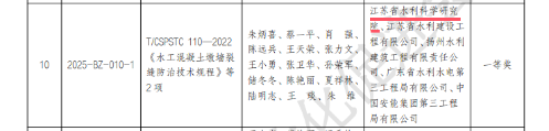 2项标准由江苏省水利科学研究院、江苏省水利建设工程有限公司、扬州水利建筑工程有限责任公司、广东省水利水电第三工程局有限公司、中国安能集团第三工程局有限公司等单位完成。
