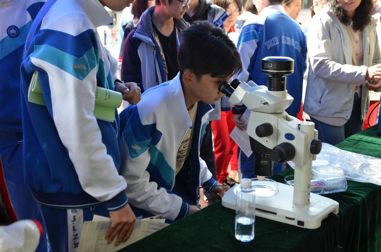 活动现场,省水利学会与我院科普团队的专家展示了多款用于水利一线的高精尖设备。能够识别隐患、给大地做“CT”的探地雷达、搭载高清镜头与激光雷达的无人机、通过测深仪绘制水下地形图的无人船、实时构建三维模型的手持激光扫描仪、用于鉴定大型浮游动物生物和底栖生物的体视显微镜以及可快速检测水体指标的多参数水质分析仪,都吸引了学生层层围观并亲手体验。“原来防洪大坝的健康是靠这些设备来‘体检’的!”“为什么体视显微镜可以直接观察虫子,不用像生物显微镜那样制作切片呢?”同学们围着专家踊跃提问,并在指导下尝试操作设备,眼神里充满了对科学奥秘的好奇与专注。