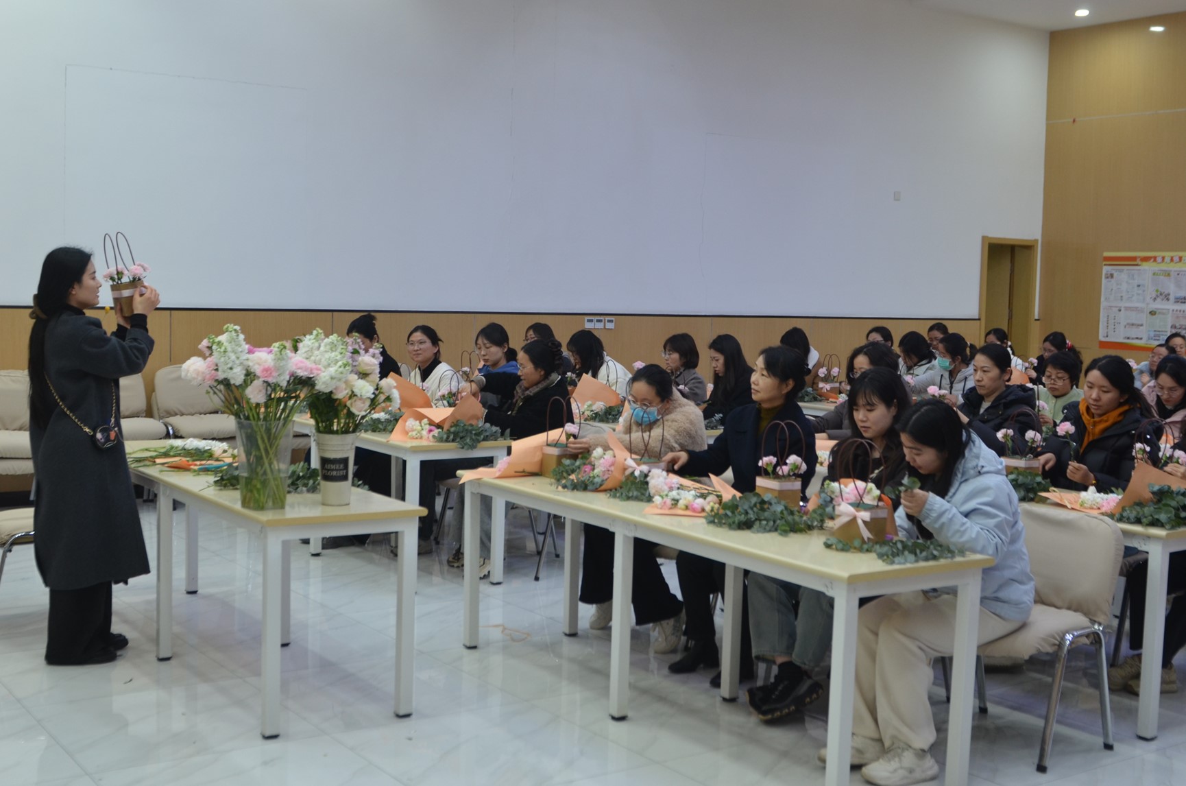 3月6日,花艺活动在温馨愉悦的氛围中拉开帷幕,全院女职工欢聚一堂,共赴这场与美好相遇的花艺之约。活动特别邀请了专业花艺老师现场授课,老师结合自身多年从业经验,用通俗易懂的语言,从花材识别、养护技巧、色彩搭配原则到基础插花造型,进行了深入浅出的讲解,同时现场示范了花材修剪、花泥固定、花枝摆放等关键步骤,细致拆解了插花的美学精髓,让在场女职工对插花艺术有了全新的理解与认知。在实操环节中,女职工们化身“花艺设计师”,兴致勃勃地拿起花材、剪刀与花器,全身心投入到创作之中。大家结合老师讲解的技巧,充分发挥想象力与创造力,或低头沉思挑选花材,或轻声交流搭配灵感,或小心翼翼修剪花枝、调整花型,在一剪一枝、一插一摆间,将原本零散的花材,精心搭配成一束束错落有致、生机盎然的花艺作品。
