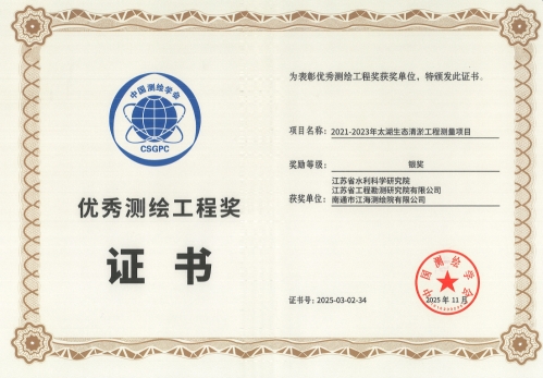 2021-2023年太湖生态清淤工程测量项目项目获奖证书