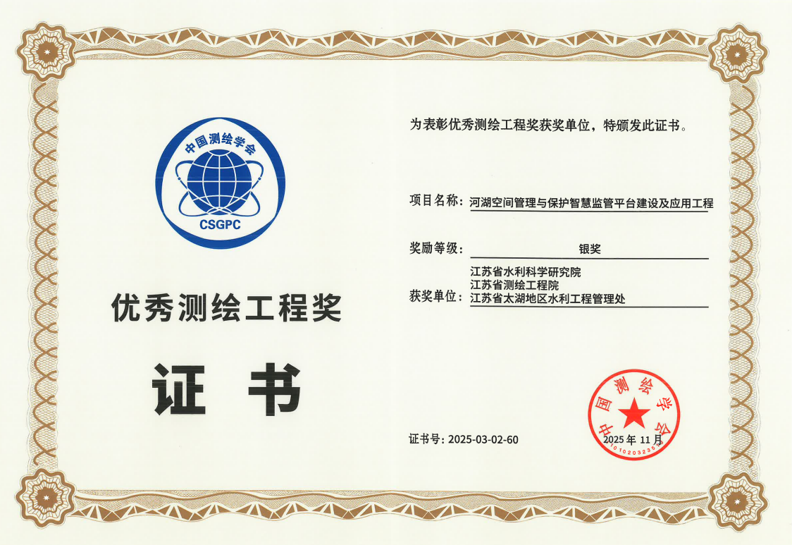 河湖空间管理与保护智慧监管平台建设及应用工程项目获奖证书